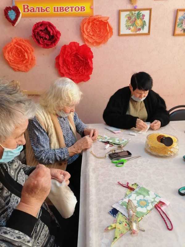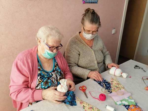 В отделении "Специализированный жилой дом" продолжает работу "Мастерская радости", Школа традиционной культуры. Сегодня обслуживаемые мастерили куклу-зерновушку.