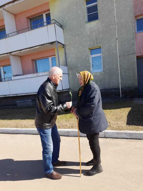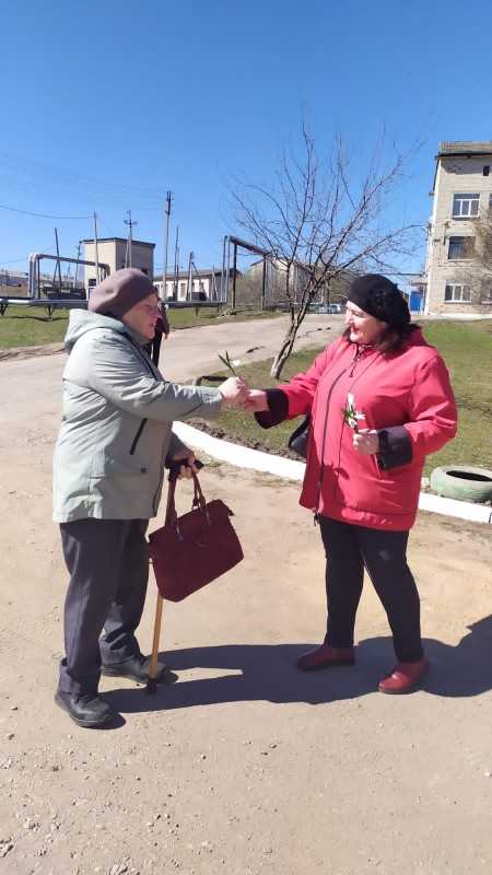 Обслуживаемые Отделения дневного пребывания на занятиях по трудотерапии изготовили подснежники из гофрированной бумаги и раздали их прохожим, подарив частичку весеннего тепла