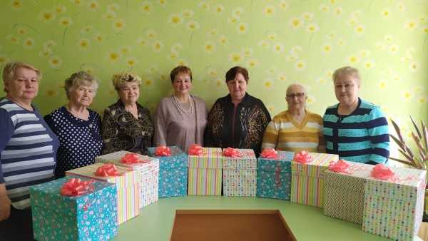 Руками граждан старшего поколения вяжутся пинетки для новорожденных. Украшаются и декорируются коробочки для подарков с крышкой. В эти подарочные коробочки будут положены разные нужности для малышей.