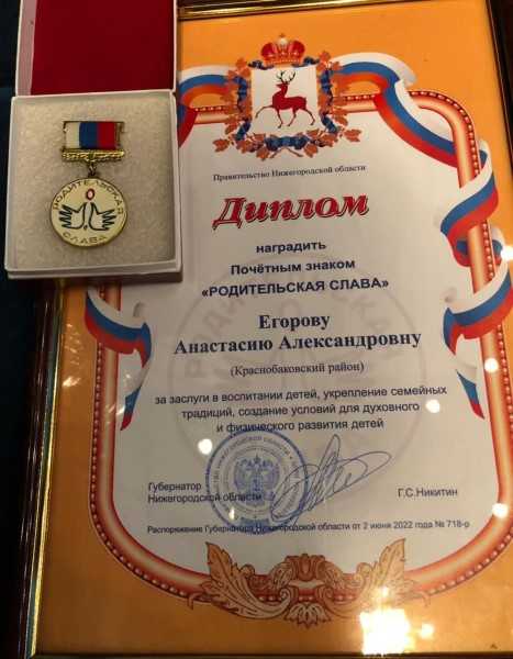 Сегодня в Нижегородском театре юного зрителя состоялось награждение победителей конкурса "Нижегородская семья" и вручение почетного знака "Родительская слава". В торжественной обстановке министр социальной политики Нижегородской области Исаева Н. С. поблагодарила семьи за участие и вручила заслуженные подарки победителям. Наш район представляли две семьи, обе - в числе призеров. Егорову Анастасию Александровну наградили почетным знаком "Родительская слава", а семье Фокиных, занявших второе место в номинации "Секреты моей семьи", вручили игрушки и памятный подарок. Закончилось мероприятие приятным сюрпризом - спектаклем "Волшебник страны Оз". Всех переполняли позитивные эмоции, все остались довольны.