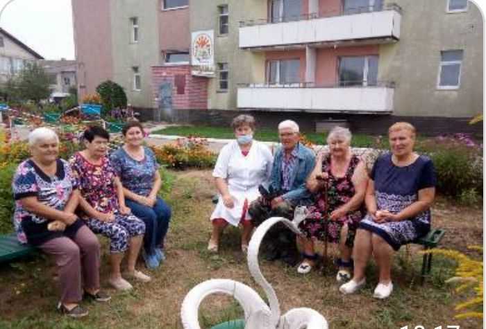 Жители отделения "Специализированный жилой дом" продолжают работу по благоустройству придомовой территории, ухаживая за цветами и растениями на клумбах