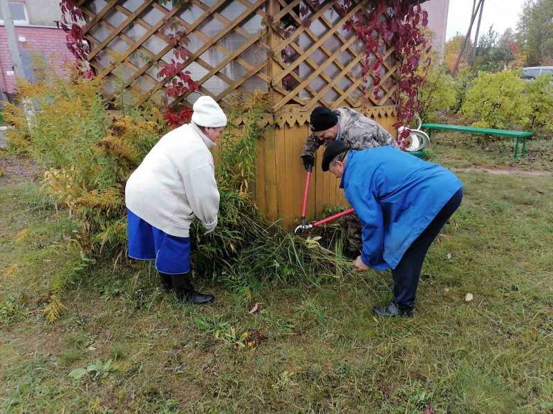 Сотрудники и жители отделения "Специализированный жилой дом для граждан пожилого возраста и инвалидов" приняли активное участие в субботнике по уборке территории Спецжилдома