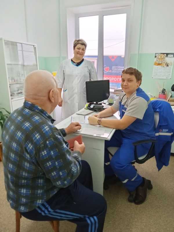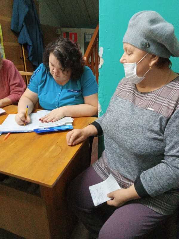 Жители с. Носовая вместе с социальными работниками отделения социально-бытового обслуживания на дому №3 принимают участие в обследовании своего здоровья в мобильно-диагностическом комплексе "Поезд здоровья"