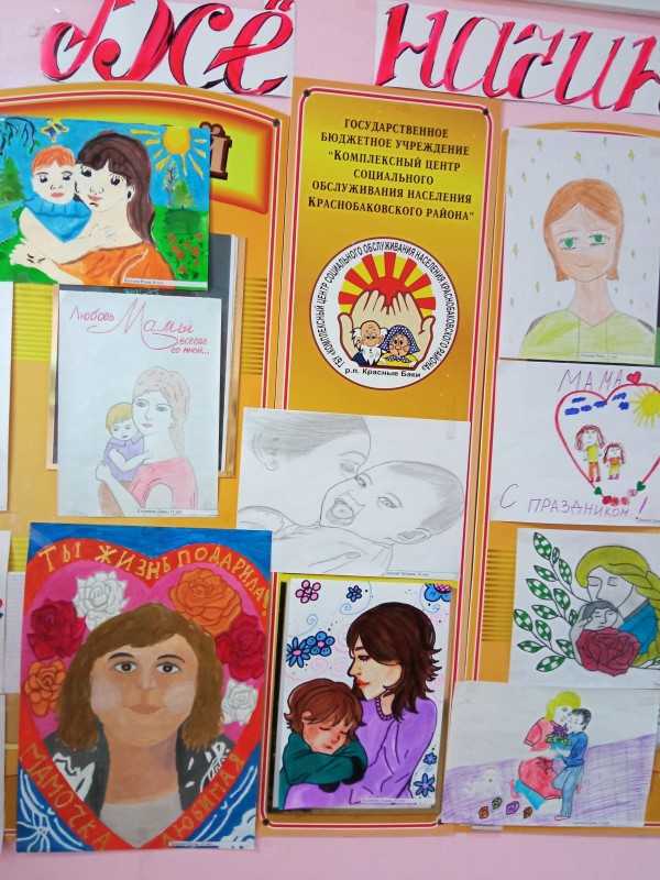 В рамках его празднования в ГБУ «КЦСОН Краснобаковского района» проводился конкурс детского рисунка «Всё начинается с мамы». Искренние и красочные, очень схожие с оригиналом или совсем на него не похожие... Работ было много, подведение итогов стало настоящим испытанием. Решили объявить победителей в трёх возрастных категориях: в возрасте с 4 до 8 лет лучший рисунок был сделан Кочневым Романом, с 9 до 11 - Кузьминой Марией, призёром в возрасте с 12 до 15 лет стал Румянцев Егор. Все участники конкурса получили сладкие подарки, победителям кроме того вручены грамоты и изготовленные в ГБУ «КЦСОН Краснобаковского района» памятные подарки.