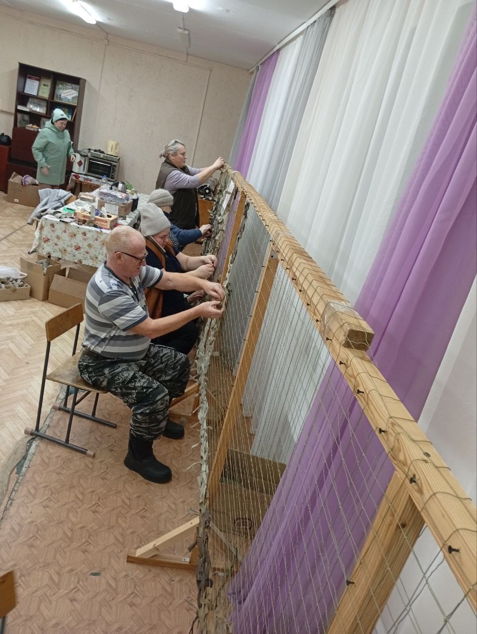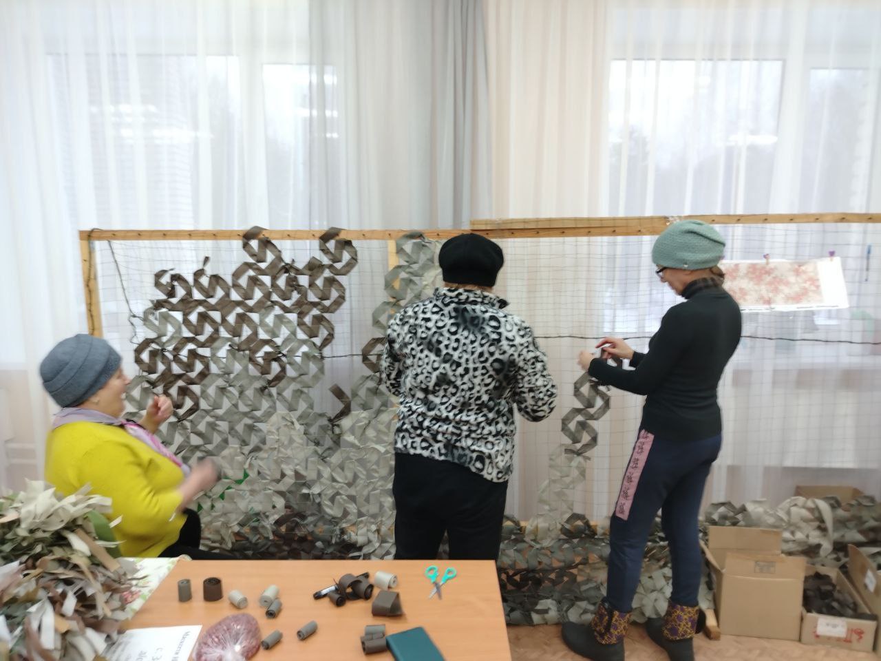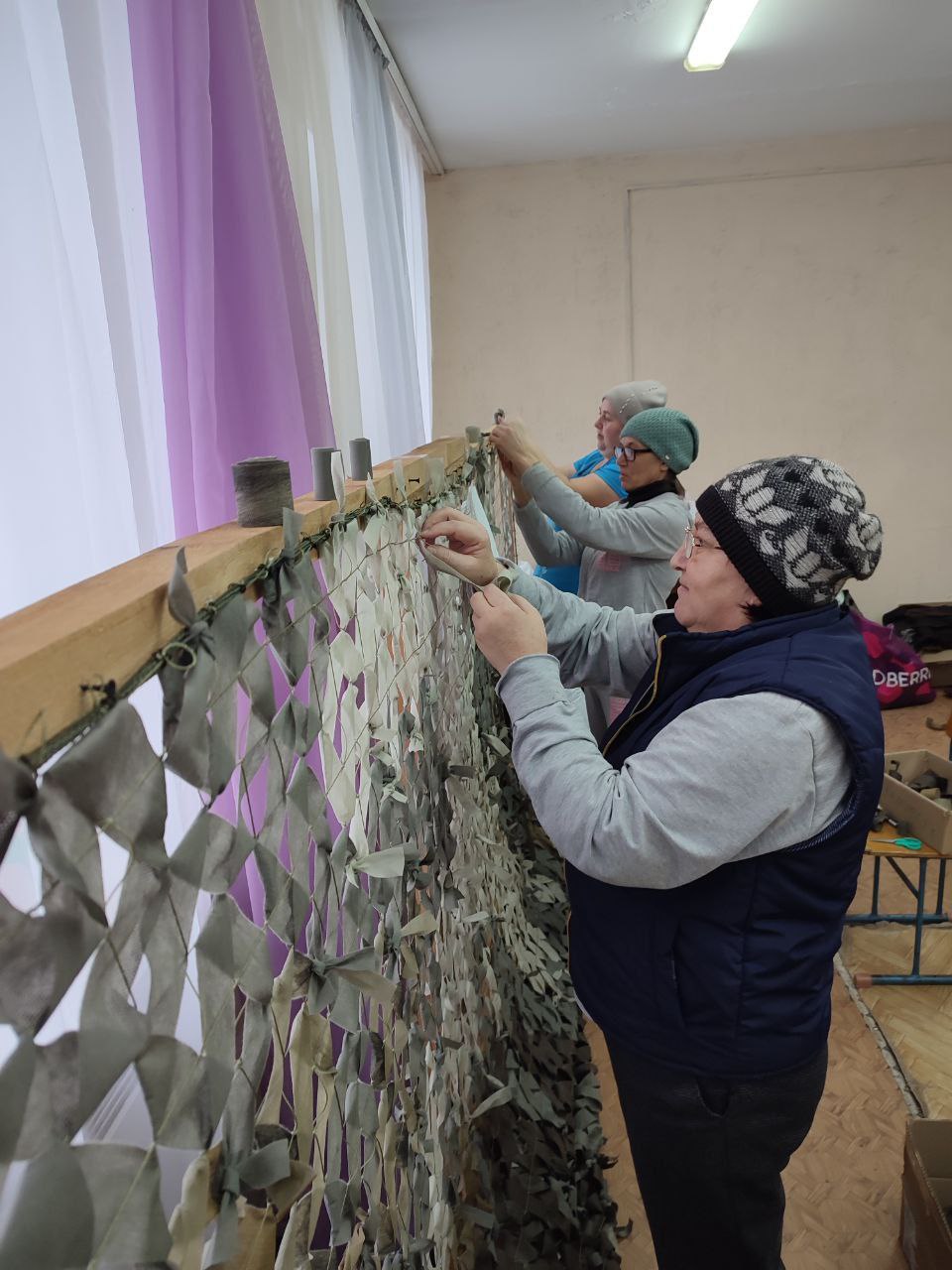 У социальных работников с. Зубилиха готовы к отправке в зону СВО четвёртая и пятая маскировочные сети. В изготовлении приняли участие 9 социальных работников: Коновалова Л.А., Храмцова К.К., Зорина И.В., Зайцев В. В., Зайцева Т. И., Зюзина Т. Л., Смирнова Т.Н., Воробьёва О.М., Грибина В.В.