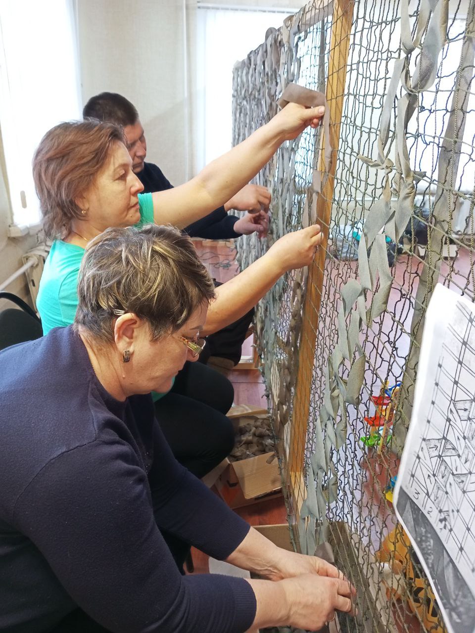 Социальные работники ГБУ "КЦСОН Краснобаковского муниципального округа" в с. Носовая продолжают плести маскировочные сети для отправки в зону действия СВО
