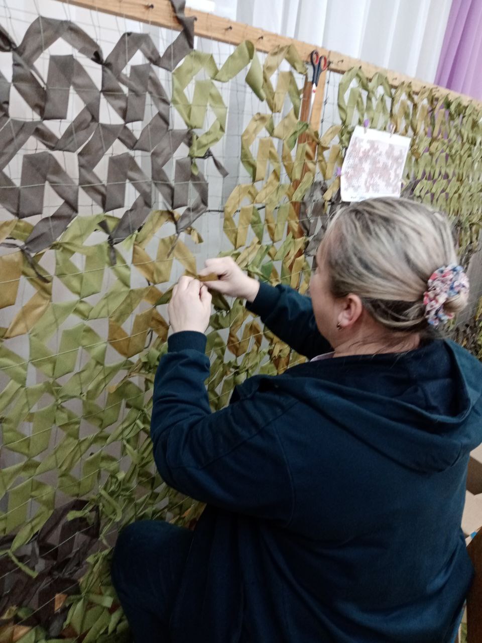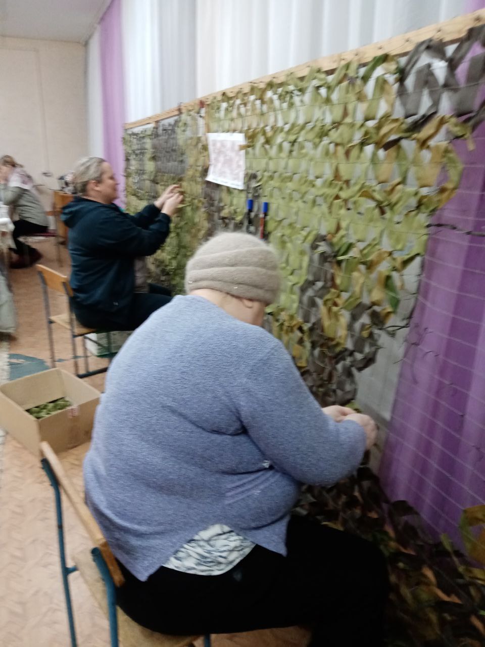 В с. Зубилиха социальные работники ГБУ "КЦСОН Краснобаковского муниципального округа" изготовили десятую маскировочную сеть для СВО
