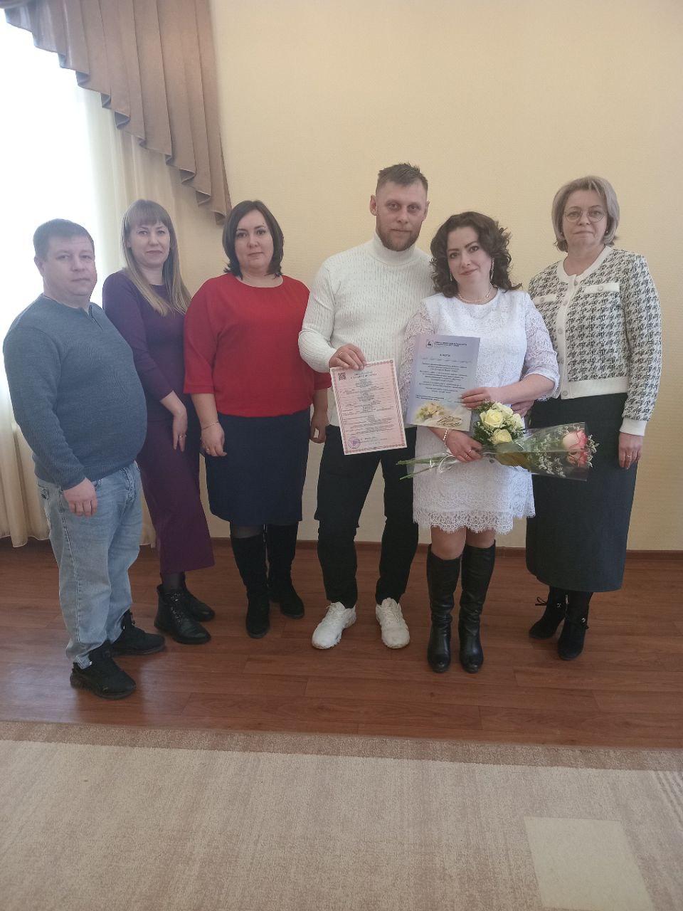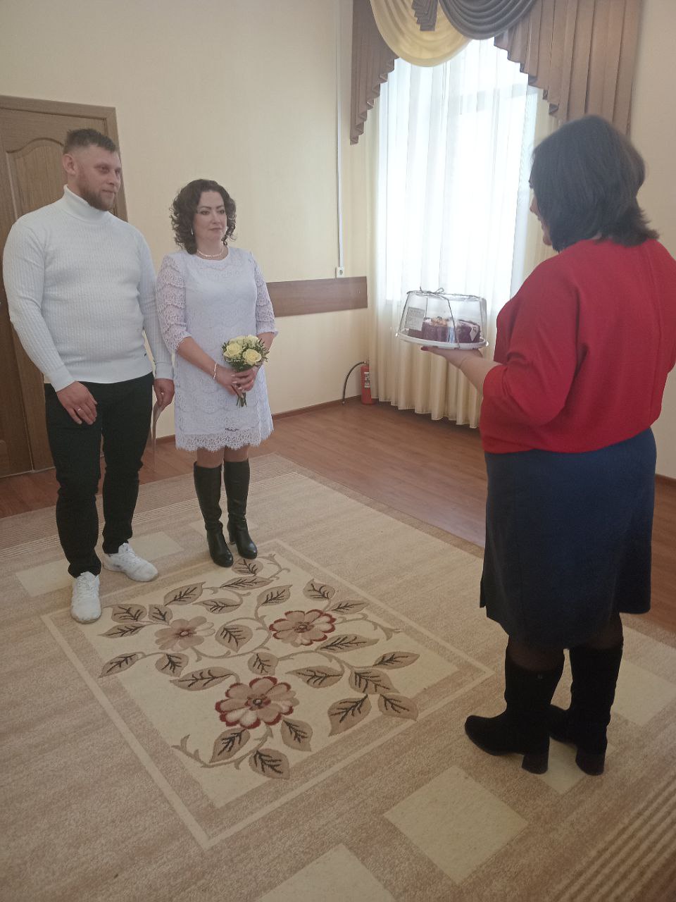 С радостным событием молодоженов поздравила Начальник отдела ЗАГС С.И. Титова и вручила поздравительное письмо от руководителя главного управления ЗАГС Нижегородской области О.С. Красновой. Также семьи поздравила заведующая отделом семьи и детей ГБУ «КЦСОН Краснобаковского муниципального округа» А.С. Разина.