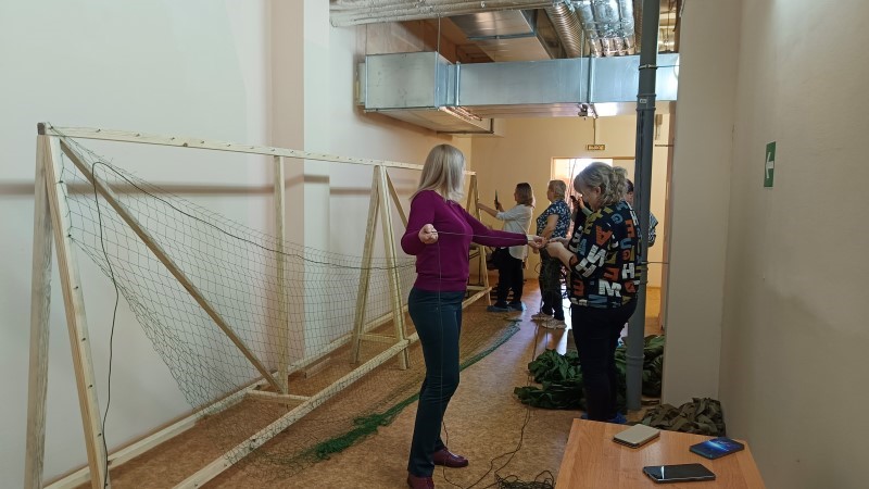 Сотрудники ГБУ «КЦСОН Краснобаковского муниципального округа» организовали мастер-класс по плетению маскировочных сетей в новом пункте, расположенном на базе физкультурно-оздоровительного комплекса «Богатырь».