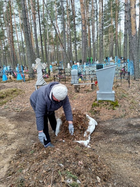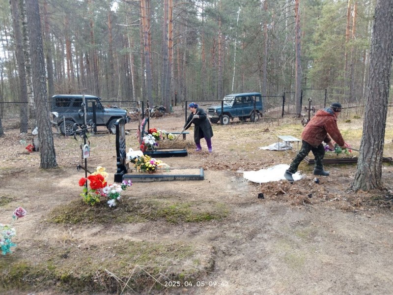 Социальные работники ГБУ "КЦСОН Краснобаковского муниципального округа" приняли участие в субботнике по уборке территории кладбища в с. Кириллово