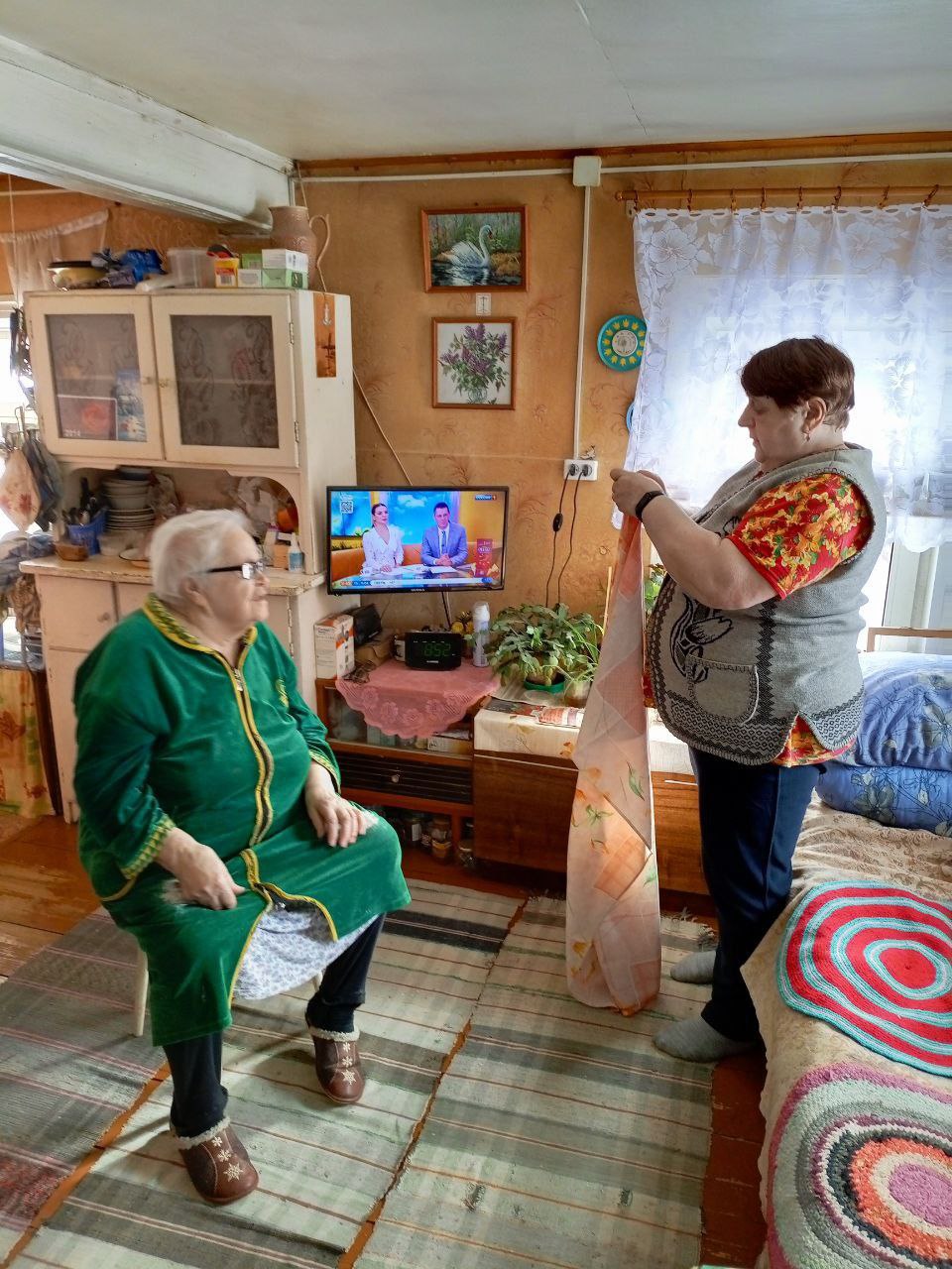 В с. Зубилиха социальные работники ГБУ "КЦСОН Краснобаковского муниципального округа" активно проводят генеральную уборку у обслуживаемых перед праздником "Пасха"