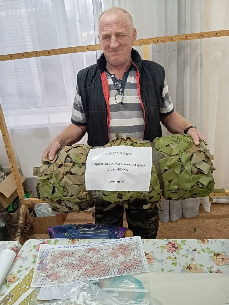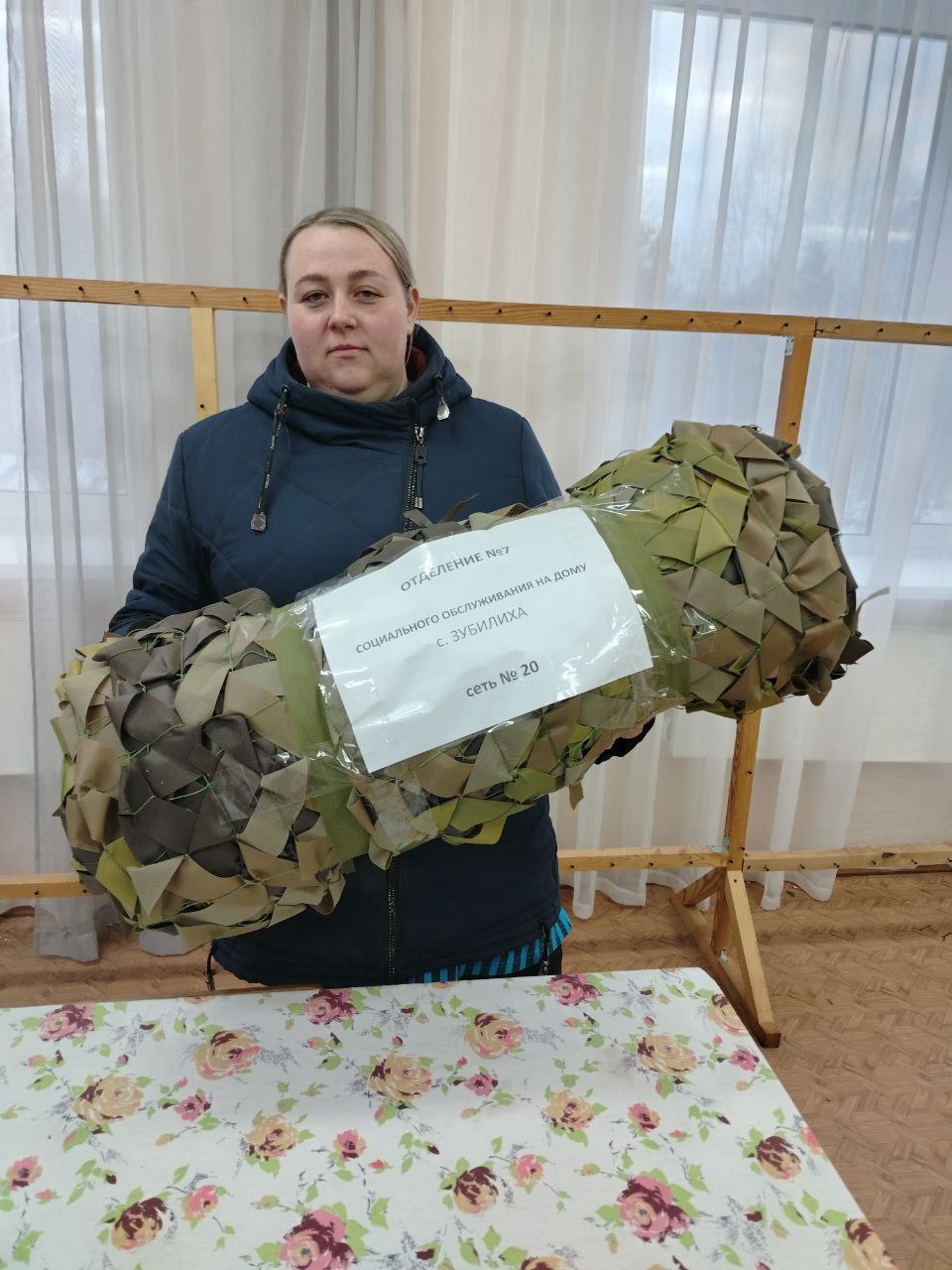 Сотрудники и социальные работники ГБУ "КЦСОН Краснобаковского муниципального округа" ведут активную работу по изготовлению маскировочных сетей для СВО