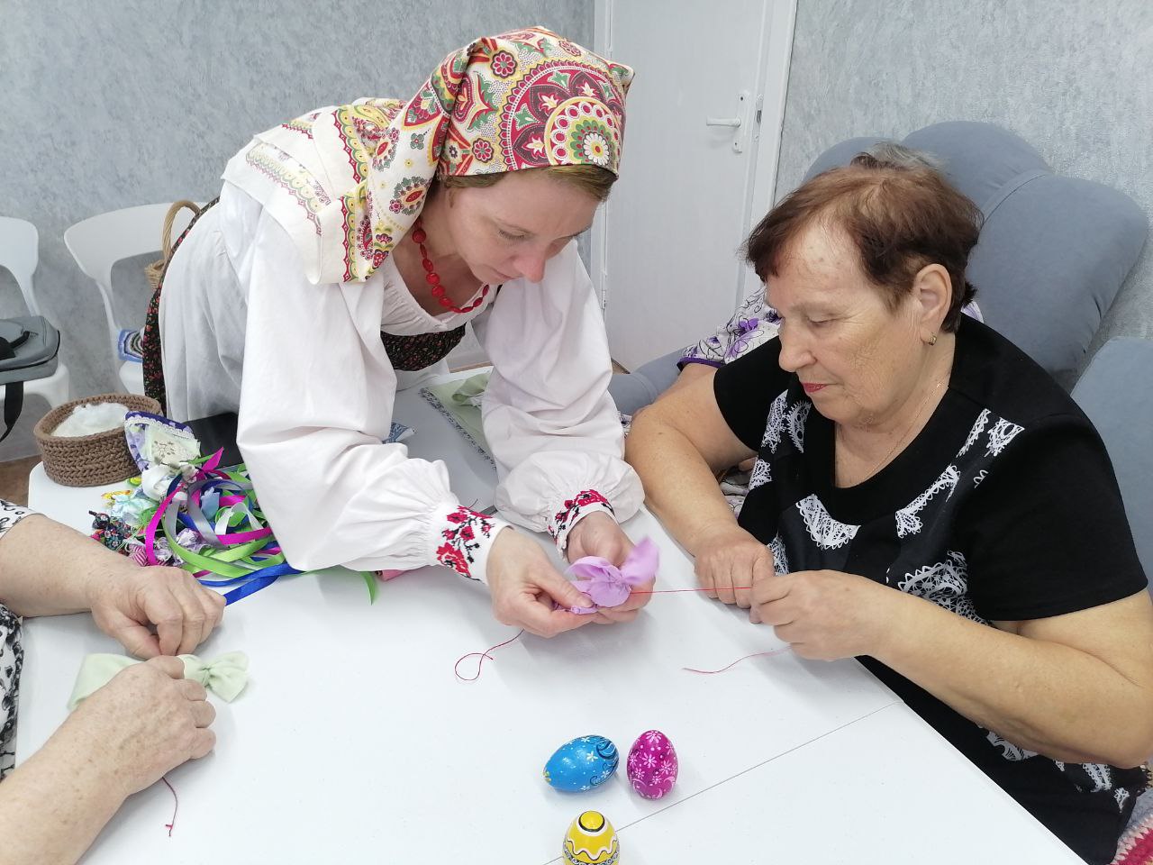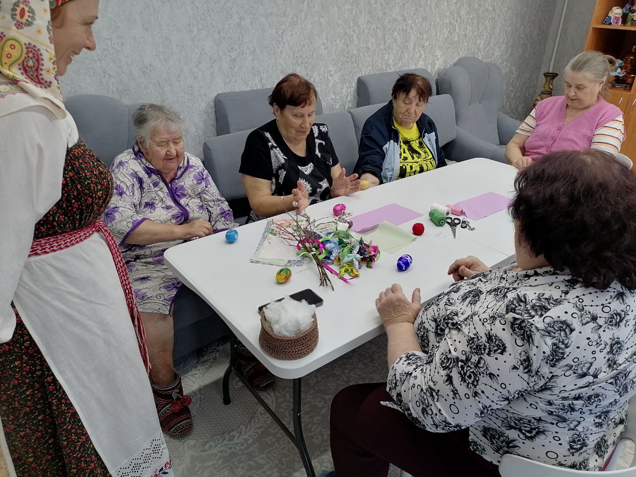 Мастер народной куклы Чиркина Н.А. продолжает череду регулярных встреч с жителями отделения "Специализированный жилой дом для граждан пожилого возраста и инвалидов" ГБУ "КЦСОН Краснобаковского муниципального округа". Наталья Александровна рассказала участникам мастер- класса о том, что на Пасхальной неделе принято ходить в гости и садиться за стол с тёплыми разговорами, вспоминать как отмечали весенние праздники в нашем крае, в других областях и делиться своими семейными традициями. Участники встречи вспоминали Благовещенье, Вербное воскресенье и Пасху, отгадывали загадки, желали друг другу здоровья и играли с крашеными яйцами.