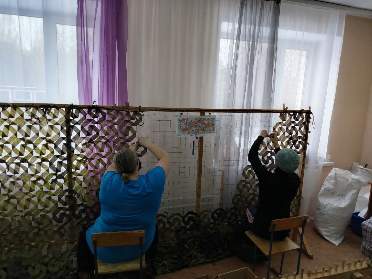 В с. Зубилиха социальные работники ГБУ "КЦСОН Краснобаковского муниципального округа" ведут активную работу по изготовлению маскировочных сетей для СВО