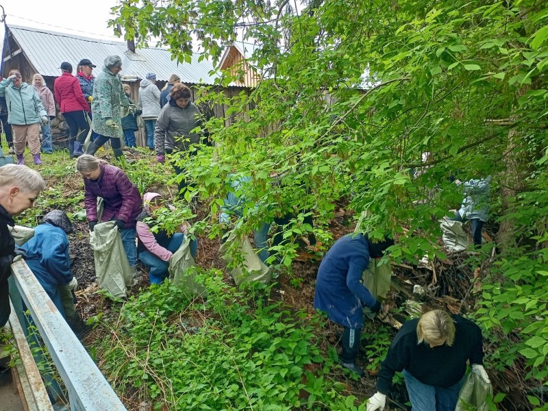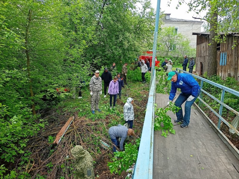 Работники организаций и предприятий Краснобаковского округа, "Волонтеры Победы" из г. Нижний Новгород совместными усилиями очистили территорию оврага от бытового мусора и старых веток.