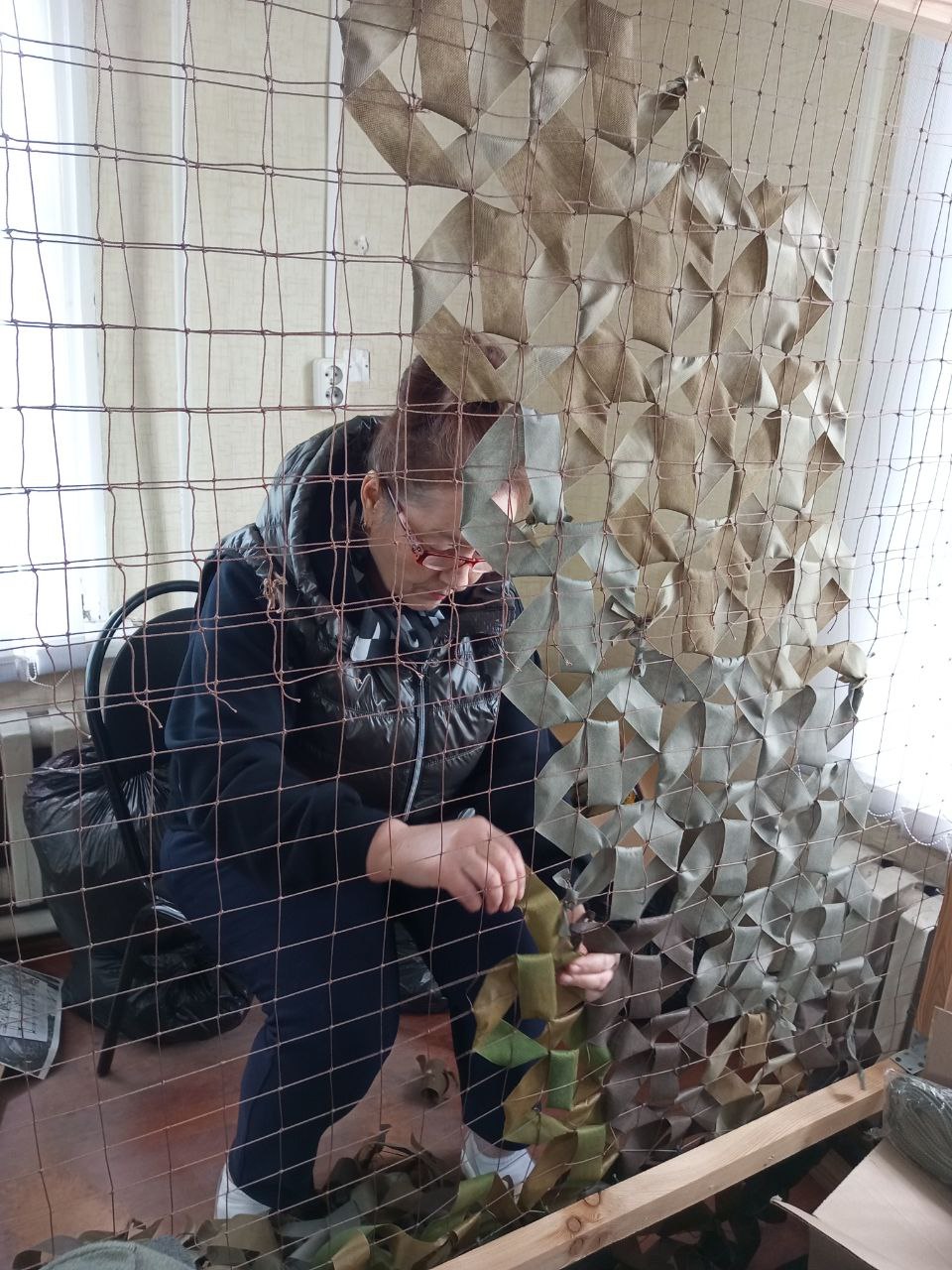 Сотрудники и социальные работники ГБУ "КЦСОН Краснобаковского муниципального округа" активно принимают участие в изготовлении маскировочных сетей для СВО
