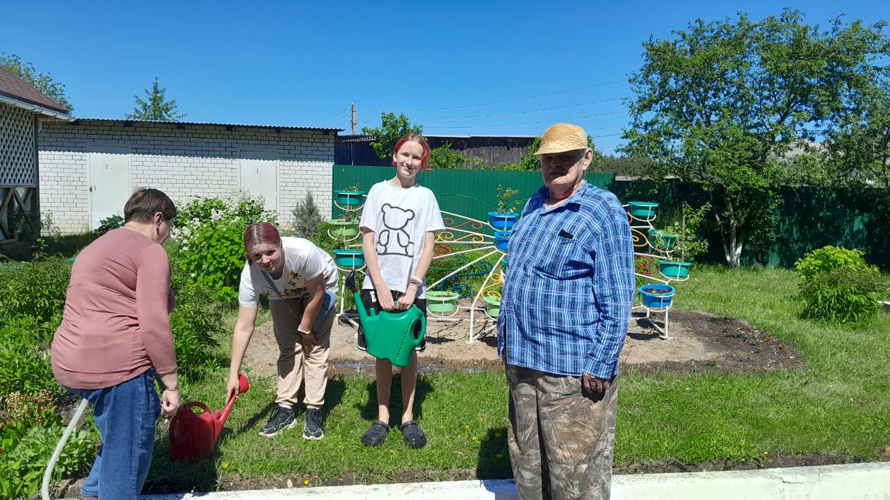 Волонтерский отряд «Лучики добра», состоящий из воспитанников и педагогов детского дома совместно с сотрудниками отделения «Специализированный жилой дом для граждан пожилого возраста и инвалидов» ГБУ "КЦСОН Краснобаковского муниципального округа" провели акцию по благоустройству территории «Стало везде чисто и красиво!». Летом за цветами на территории отделения дети помогают ухаживать, следуя основным правилам: полив, защита от солнца, опрыскивание, удаление засохших частей растений.Совместный труд на цветнике даёт возможность научиться ответственности, способствует формированию трудовых навыков. И, конечно, труд на свежем воздухе способствуют сохранению и укреплению здоровья всех участников. Жители отделения «Специализированный жилой дом для граждан пожилого возраста и инвалидов» поблагодарили детей за труд ароматным чаем со сладостями.