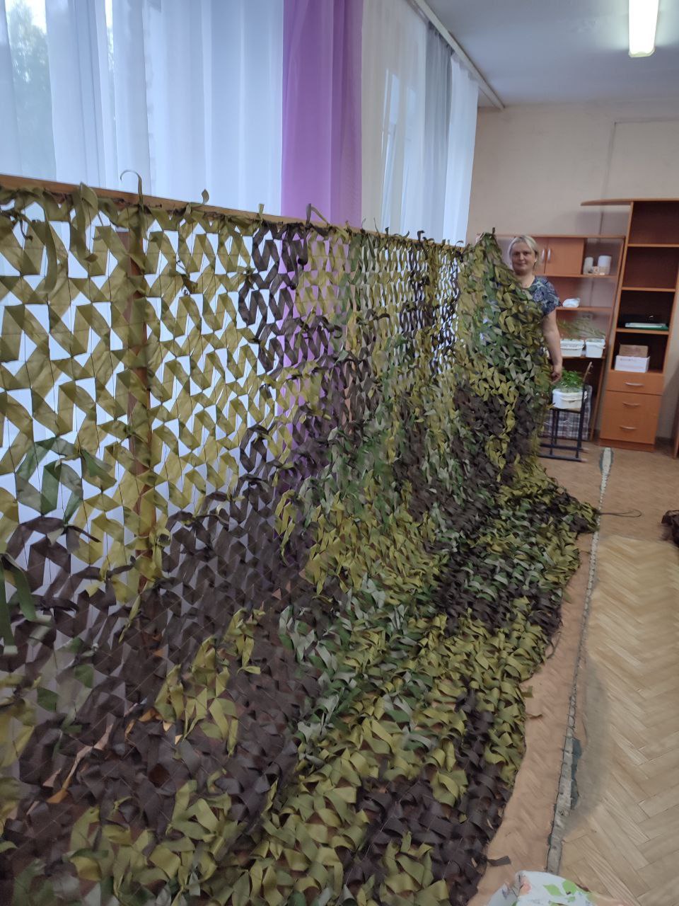 В с. Зубилиха социальные работники ГБУ "КЦСОН Краснобаковского муниципального округа" изготовили еще одну маскировочную сеть для отправки в зону действия СВО
