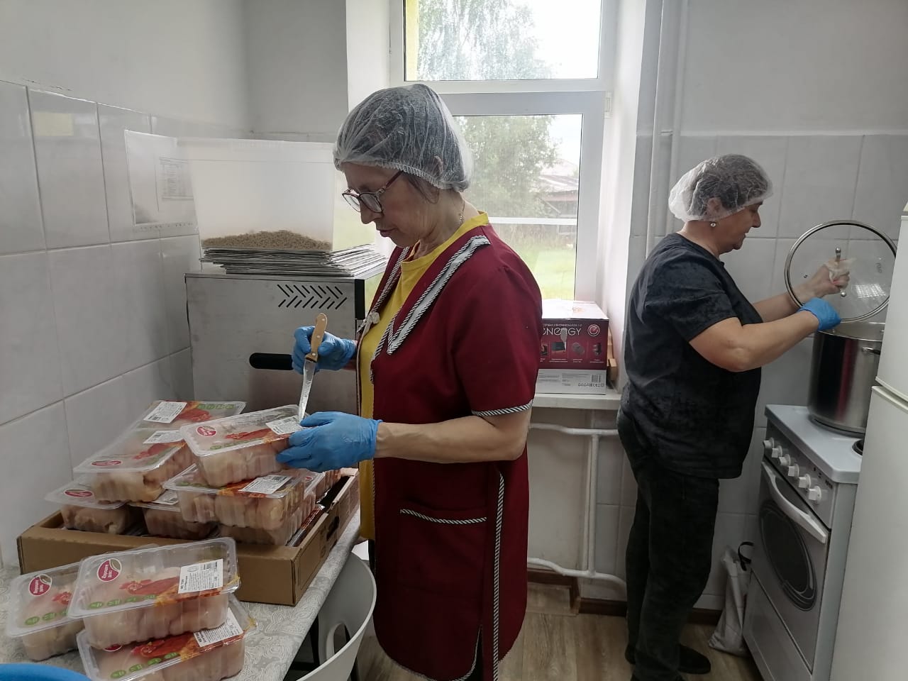 Сотрудники и жители отделения "Специализированный жилой дом для граждан пожилого возраста и инвалидов" ГБУ "КЦСОН Краснобаковского муниципального округа" продолжают подготавливать куриный фарш для сухих супов,отправляемых в зону действия СВО