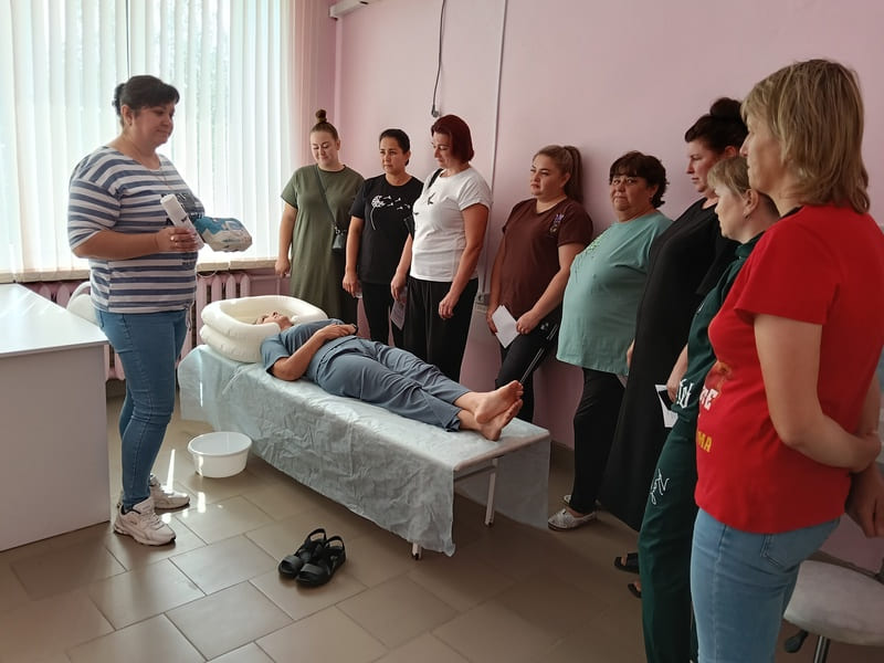 В ГБУ «КЦСОН Краснобаковского муниципального округа» продолжается обучение сотрудников, осуществляющих уход за тяжелобольными людьми на дому, в «Школе ухода» в рамках системы долговременного ухода. Программу практических и теоретических занятий подготовили специалист по социальной работе Кокина Л.Н и психолог Алимова С.В. на темы: «Инфекционная безопасность. Гигиена рук. Мытье головы в постели. Смена постельного и нательного белья», «Методы и приемы преодоления депрессивных состояний у лиц, осуществляющих уход». Программа занятий в Школе ухода включает в себя изучение теоретических основ и практическое освоение навыков общего ухода, профилактики осложнений, методов самообслуживания, правил гигиенического ухода, питания и кормления, а также приемов первой доврачебной помощи.