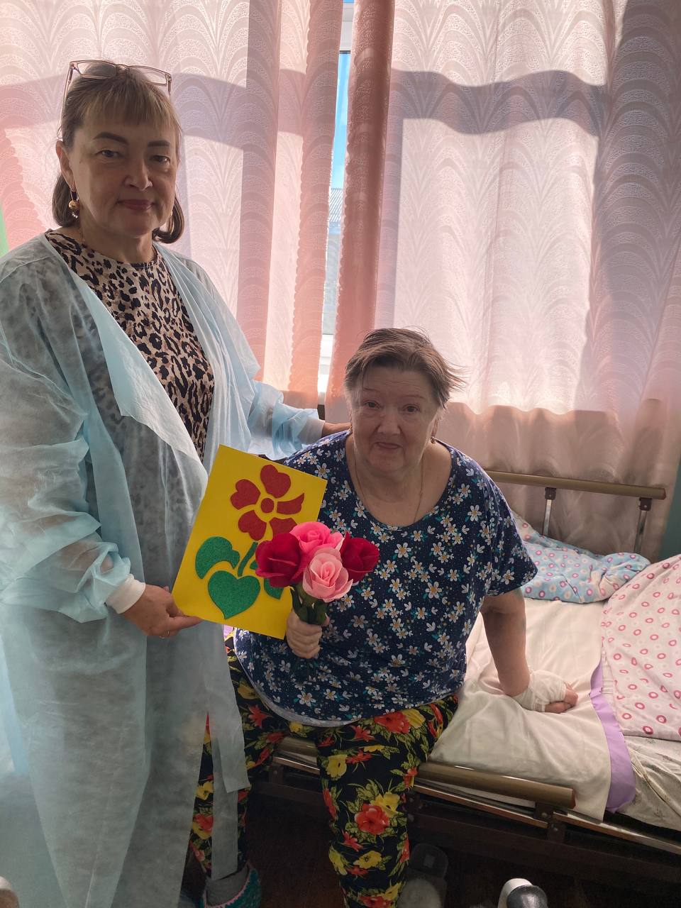 Сотрудники отделения срочной социальной службы ГБУ "КЦСОН Краснобаковского муниципального округа" вручили открытки обслуживаемым отделения сестринского ухода Краснобаковской ЦРБ.