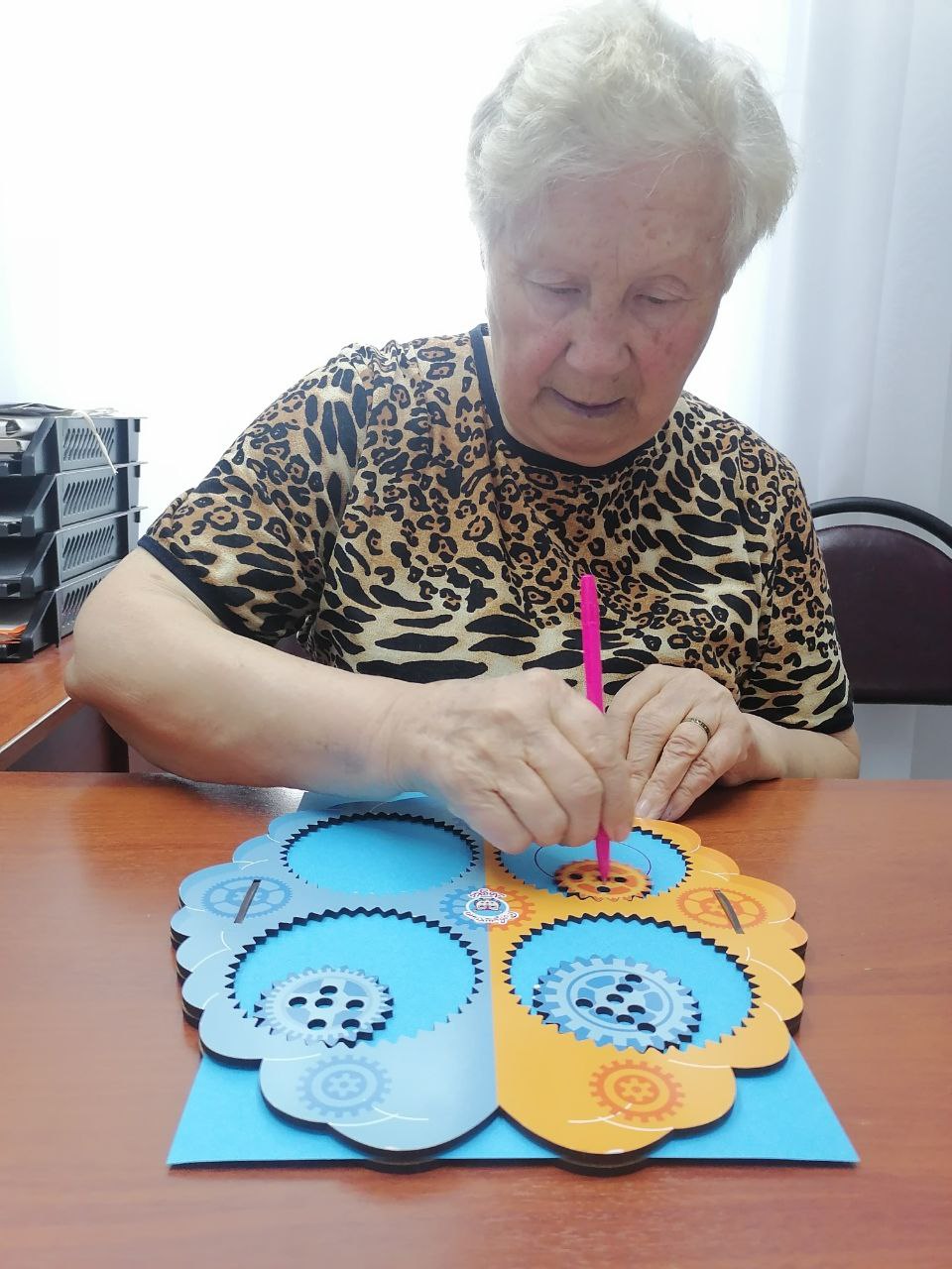 В отделении «Специализированный жилой дом для граждан пожилого возраста и инвалидов» ГБУ «КЦСОН Краснобаковского муниципального округа» продолжаются занятия в рамках программы «Ключи к здоровью».Пожилые люди активно занимаются нейробикой. Нейробика для пожилых — это комплекс простых физических и умственных упражнений, направленных на улучшение когнитивных функций, таких как память, внимание и речь, а также на стимуляцию новых нейронных связей в мозге. Цель — поддержание здоровья мозга и профилактика возрастных нарушений, включая деменцию. Примеры упражнений включают смену ведущей руки, выполнение непривычных действий с закрытыми глазами, решение головоломок, игры ,занятия с нейродосками и спирографом, что помогает сделать ум более гибким и улучшает координацию.