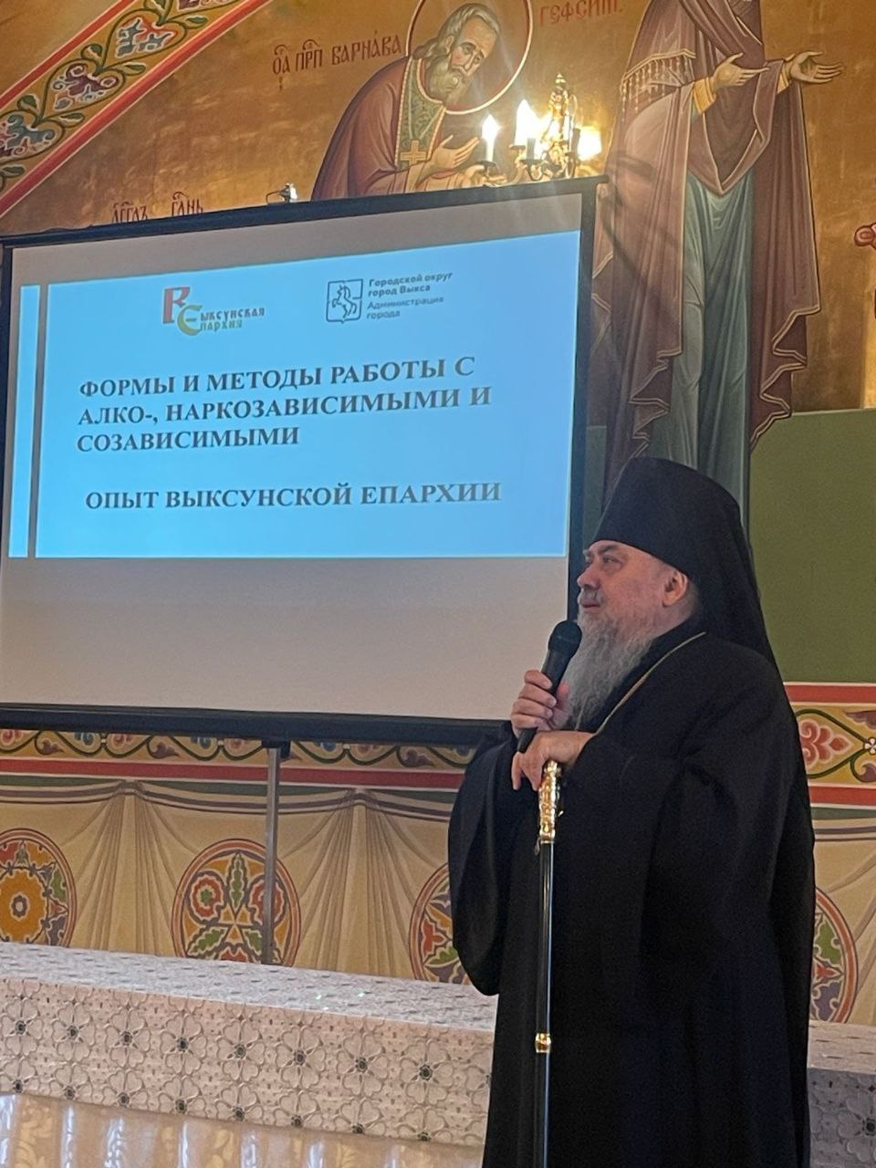 Также выступил с приветственным словом Епископ Выксунский и Павловский Гедеон, он рассказал о формах и методах работы с алко-зависимыми людьми.