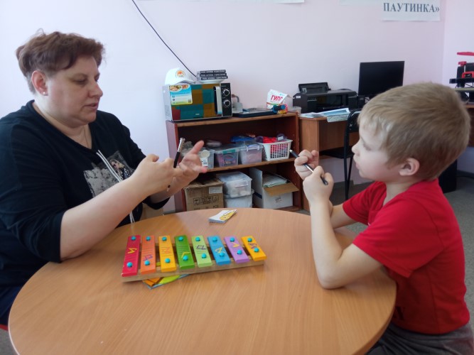 Во время проведения месячника информирования о проблеме аутизма с детьми с расстройствами аутистического спектра продолжается работа. 6 апреля с детьми проводилась игра "Ручки" и "Перехват карандаша". Дети учились различать кулачок, ладошку и ребро ладошки, а также передавать карандаш от пальчика одной руки пальчику другой.