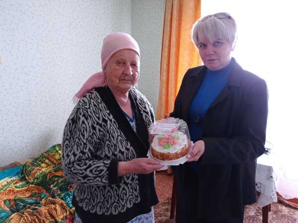 Социальные работники отделения социально-бытового обслуживания на дому №7 поздравили обслуживаемых с Декадой пожилых людей, пожелали крепкого здоровья, благополучия и вручили сладкие подарки