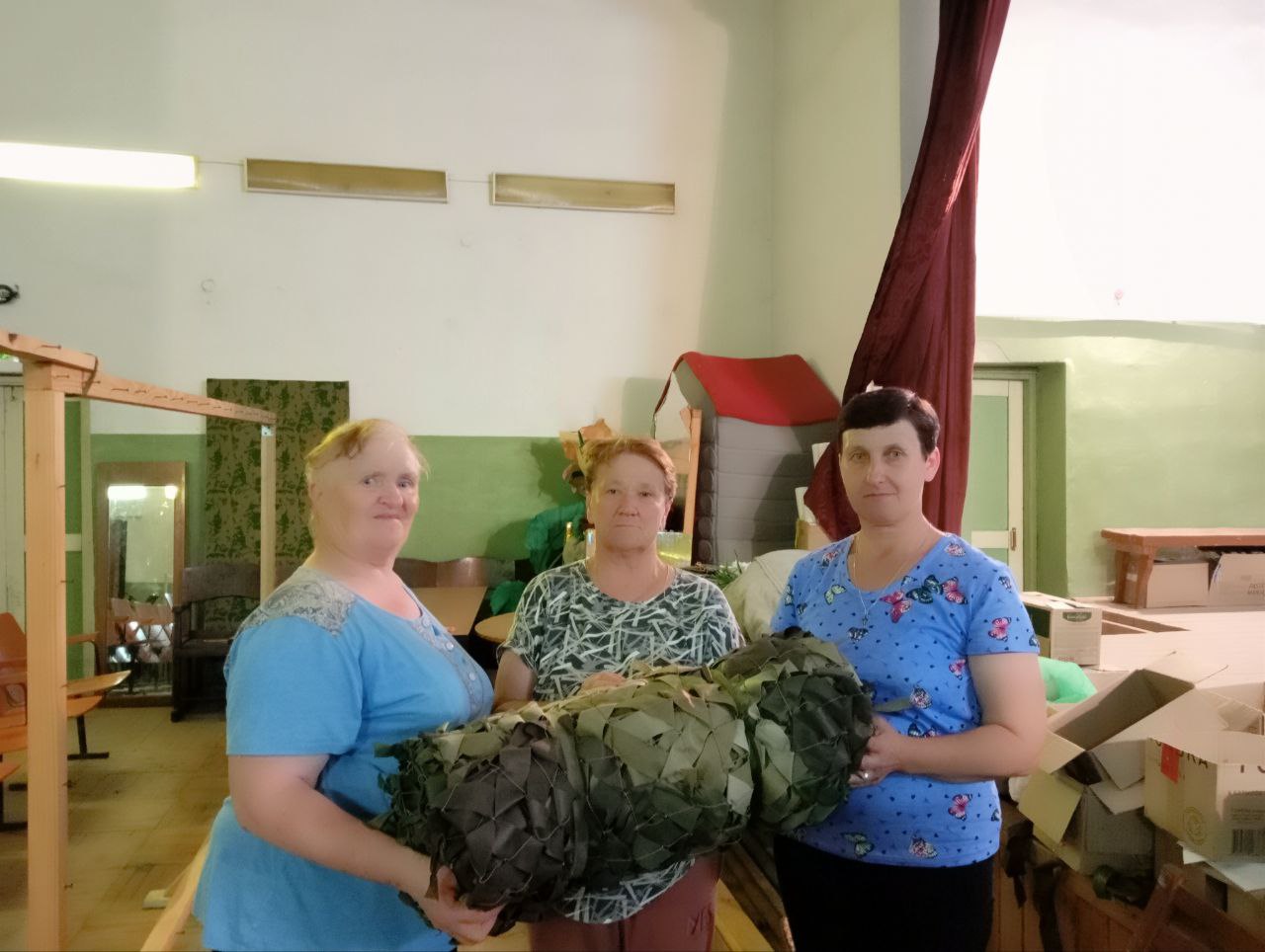 В с. Зубилиха социальные работники ГБУ "КЦСОН Краснобаковского муниципального округа" продолжают активно изготавливать маскировочные сети для отправки в зону действия СВО