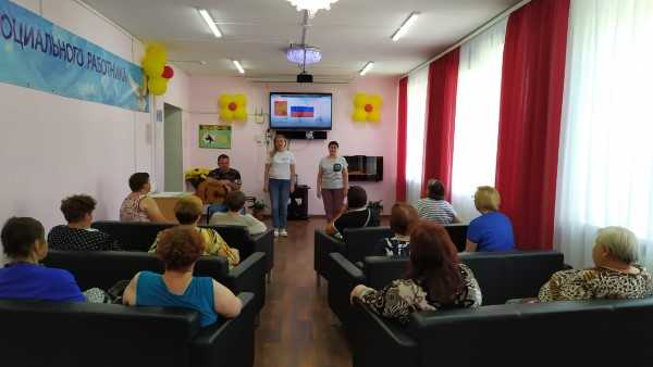 В Отделении дневного пребывания культорганизаторы Окунева С.С. и Жаркова Т.И. провели патриотический час, посвященный "Дню России" под девизом "С любовью и верой в Россию". Для обслуживаемых были проведены урок истории и культуры "Я живу в России" и познавательная викторина. В завершении мероприятия участники исполняли песни под гитару.