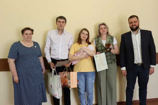 Сегодня, 1 июня, в День защиты детей состоялось торжественное вручение молодой многодетной семье Тришкиных свидетельства о рождении малышки Софии. Кроме получателей первого документа в органах ЗАГС Краснобаковского района присутствовали заместитель главы Администрации Краснобаковского района Запевалов А. Е. и заведующая отделением социального обслуживания семьи и детей ГБУ «КЦСОН Краснобаковского района» Махнева Л. А. Они обратились к родителям с пожеланиями здоровья и благополучия для девочки и вручили памятные подарки.