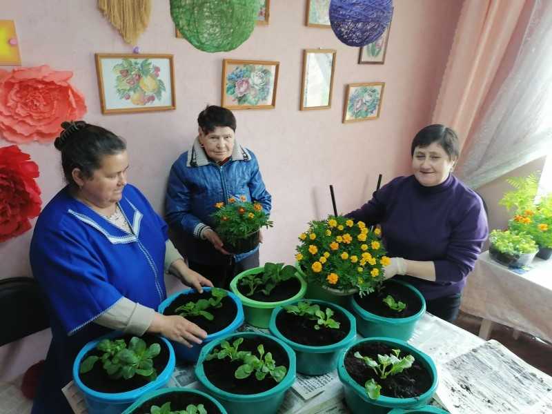 Члены клуба "Зеленый мир" отделения "Специализированный жилой дом" подготовили и высадили рассаду однолетних цветов в открытый грунт, подготовили вазоны для благоустройства территории отделения.