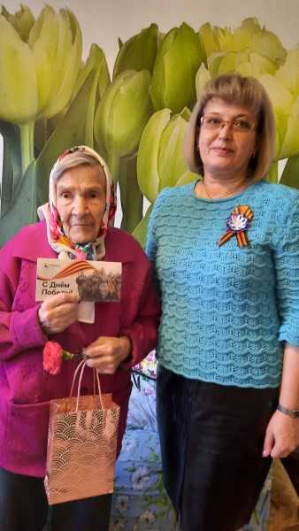 Сотрудники ГБУ "КЦСОН Краснобаковского района" поздравили участника ВОВ и вдов ветеранов ВОВ с наступающим Днем Победы в Великой Отечественной войне и вручили им подарки, предоставленные благотворительным фондом "РОСЬ"