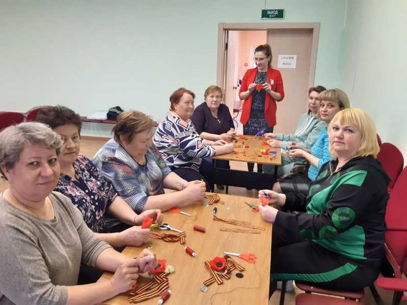 Сотрудники отделений социально-бытового и социально-медицинского обслуживания на дому п. Шеманиха активно готовятся к празднованию Дня Великой Победы 9 мая. На мастер-классе все работники изготовили броши из Георгиевских ленточек