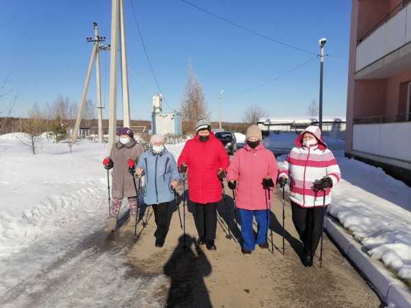 В Отделении дневного пребывания для обслуживаемых проводятся занятия на свежем воздухе по "Скандинавской ходьбе"