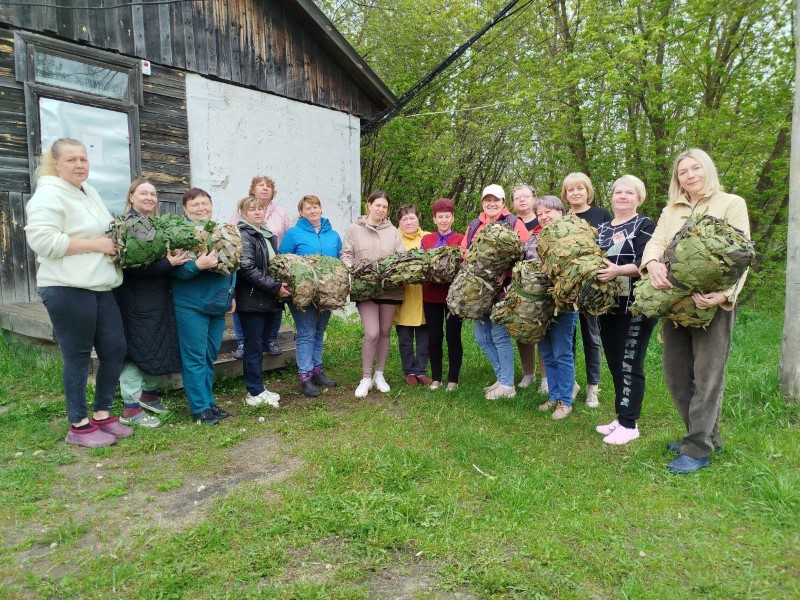 В п. Шеманиха социальные работники ГБУ "КЦСОН Краснобаковского муниципального округа" активно принимают участие в изготовлении маскировочных сетей для СВО