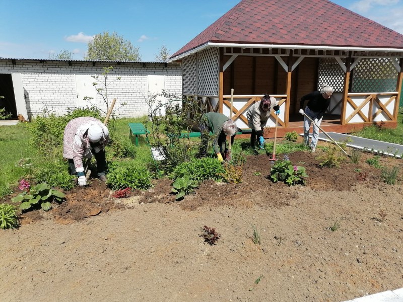 Благоустройство территории возле дома – прекрасный способ проявить свое желание жить в красивом мире, общаясь всем вместе на открытом воздухе весенним деньком. Денёк выдался ясным, солнечным, что способствовало прекрасному настроению. Вооружившись необходимым инвентарем, сотрудники отделения «Специализированный жилой дом для граждан пожилого возраста и инвалидов» ГБУ "КЦСОН Краснобаковского муниципального округа" вскапывали клумбы, приводили в порядок цветники.