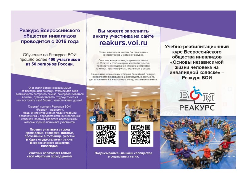Всероссийское общество инвалидов проводит уникальный учебно-реабилитационный курс для молодых инвалидов с травмой позвоночника «Основы независимой жизни человека на инвалидной коляске». Главный принцип курса: равный – равному!