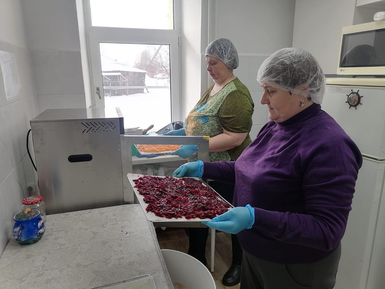 Сотрудники ГБУ "КЦСОН Краснобаковского муниципального округа" совместно с жителями отделения "Специализированный жилой дом" ГБУ "КЦСОН Краснобаковского муниципального округа" продолжают сушить овощи для изготовления сухих супов для СВО