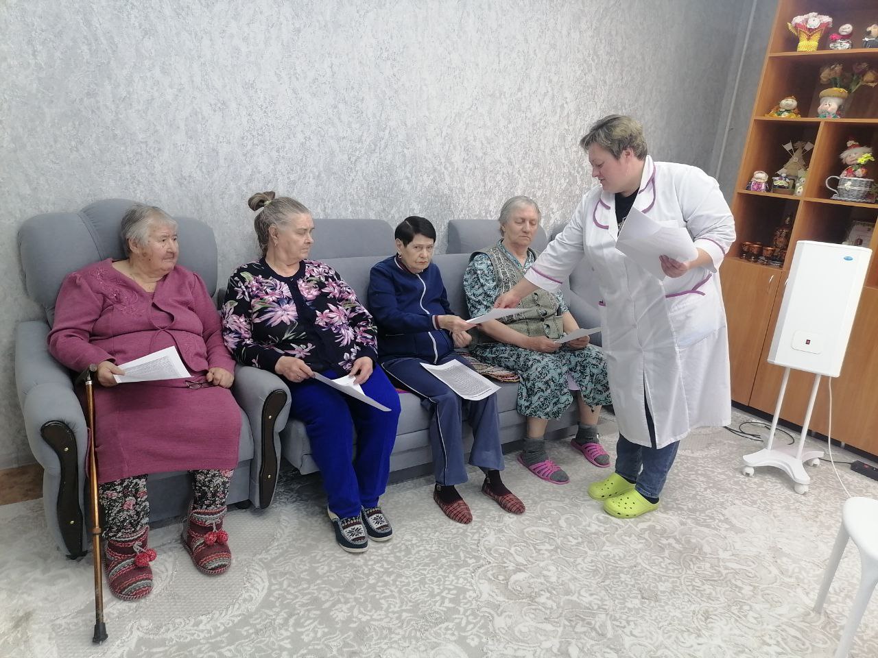 Для жителей отделения «Специализированный жилой дом для граждан пожилого возраста и инвалидов» ГБУ «КЦСОН Краснобаковского муниципального округа» состоялся медицинский час на тему: «Артериальная гипертензия. Профилактика гипертонической болезни». Гипертония является серьезным патологическим состоянием, которое значительно повышает риск заболеваний сердечно-сосудистой системы, головного мозга, почек и других органов. По оценке Всемирной Организации Здравоохранения число страдающих от гипертонии в мире составляет почти 1,3 млрд человек. Гипертония – одна из главных причин смертности: около 18 млн человек ежегодно умирает от осложнений гипертонии – инфаркта, инсульта, сердечной и почечной недостаточности. В России около 45% населения среднего и старшего возраста являются гипертониками. Присутствующие узнали о том как протекает болезнь у пожилых людей, о лечении и о возможных осложнениях заболевания, а так же получили рекомендации по профилактике осложнений
