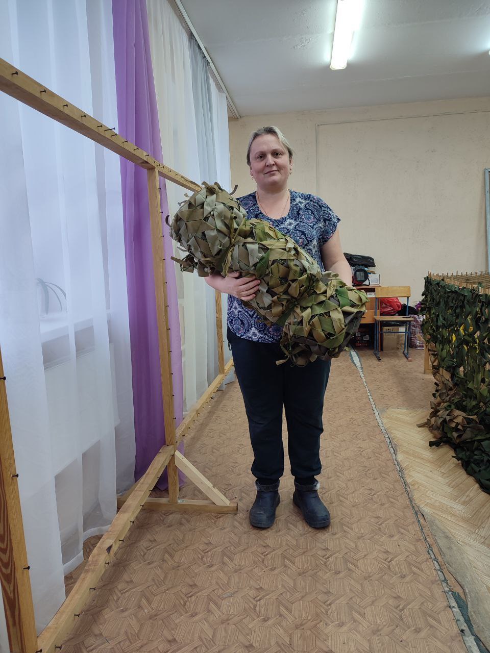 В с. Зубилиха социальные работники ГБУ "КЦСОН Краснобаковского муниципального округа" изготовили пятнадцатую маскировочную сеть для СВО