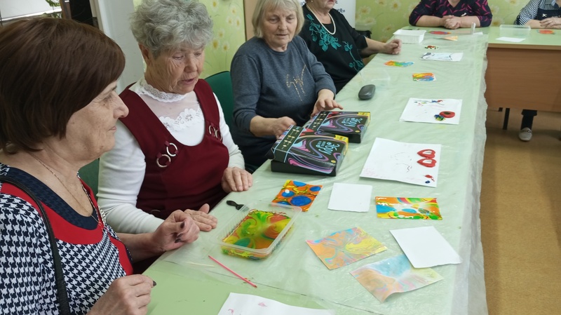 В отделении дневного пребывания ГБУ "КЦСОН Краснобаковского муниципального округа" прошла акция "Вам, Любимые!", приуроченная к празднованию Международного женского дня. Наши обслуживаемые изготовили праздничные открытки в новой технике «Эбру»- рисование на воде. В ходе мероприятия обслуживаемые погрузились в мир творчества и получили свою необыкновенную картину- открытку.