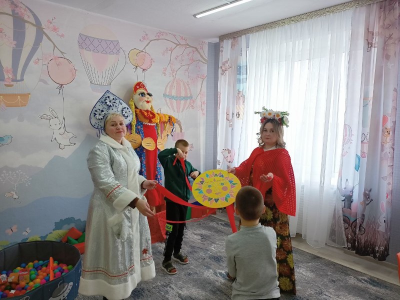 На базе ГБУ «КЦСОН Краснобаковского муниципального округа» прошли праздничные мероприятия, посвященные празднику «Масленица», в которых приняли участие дети с расстройством аутистического спектра и другими ментальными нарушениями. Веселая народная музыка создала атмосферу радости и веселья. Все участники праздника с удовольствием пели песни, танцевали играли в игры, участвовали в мастер-классе. Праздник Масленица – это традиционное прощание с зимой и встреча весны, несущей оживление природе и солнечное тепло. Символом весны и солнца является блин. Вот и мы проводили нашу Масленицу горячими золотистыми блинами и вкусным чаем.