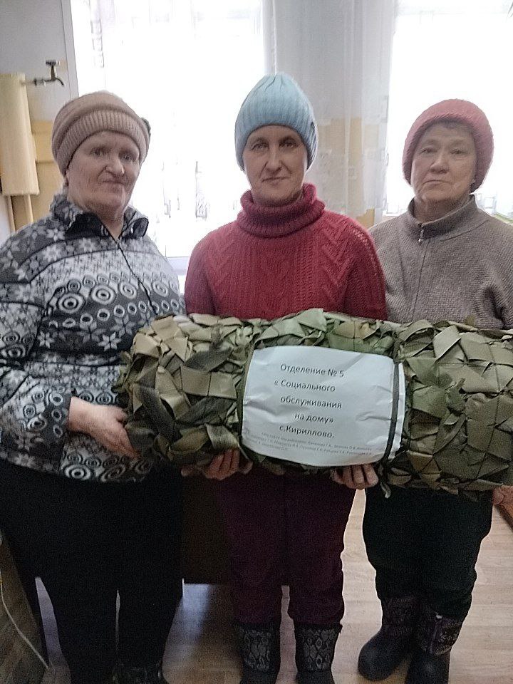 В с. Кириллово социальные работники ГБУ "КЦСОН Краснобаковского муниципального округа" сплели тринадцатую по счету маскировочную сеть для отправки в зону СВО