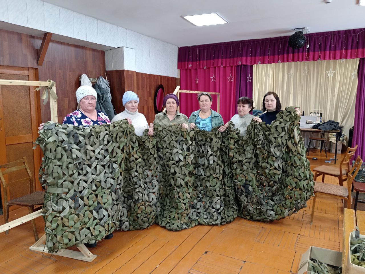 В с. Кириллово социальные работники ГБУ "КЦСОН Краснобаковского муниципального округа" сплели двенадцатую маскировочную сеть для отправки в зону действия СВО