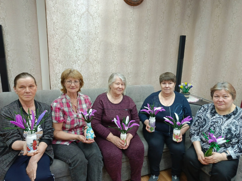 В отделении дневного пребывания отдыхающие создали нежнейшие цветы из синельной проволоки.