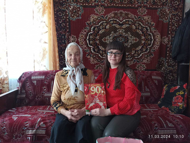 9 марта исполнилось 90 лет жительнице с. Ильинское Чибиревой Нине Павловне. С этой замечательной датой её поздравили начальник отдела по развитию Ужовской территории Перфильева С. В., заведующая отделением социального обслуживания на дому Дударева Т. Н. и социальный работник Шибаева М. А. Такой юбилей - важное событие не только для Нины Павловны, но и для её детей, внуков, правнуков. Желаем ей здоровья на долгие годы, мира, отличного самочувствия и благополучия.