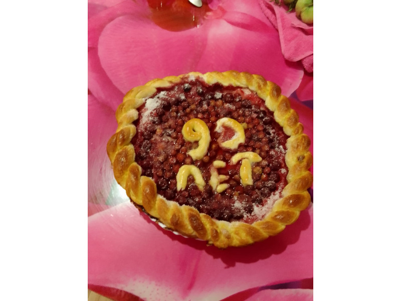 Кашиной Любови Прохоровне из с. Саитовка, сегодня исполнилось 90 лет. Социальный работник, Людмила Анатольевна испекла для неё красивый и вкусный пирог.
