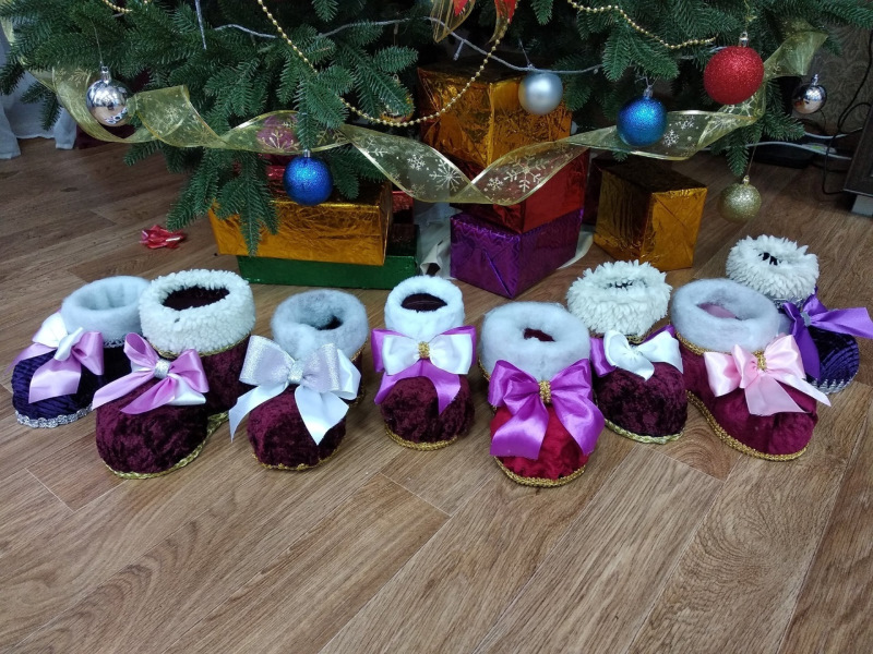 А замечательный сапожок Деда Мороза полный сладостей, к тому же изготовленный собственными руками.